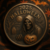 Minted with a rich, antiqued bronze finish, the coin showcases intricate detailing—from the reaper’s skeletal features to the texture of the jack-o’-lantern and moonlit graveyard. The aged patina adds a vintage feel, enhancing the spooky, timeless spirit of Halloween.