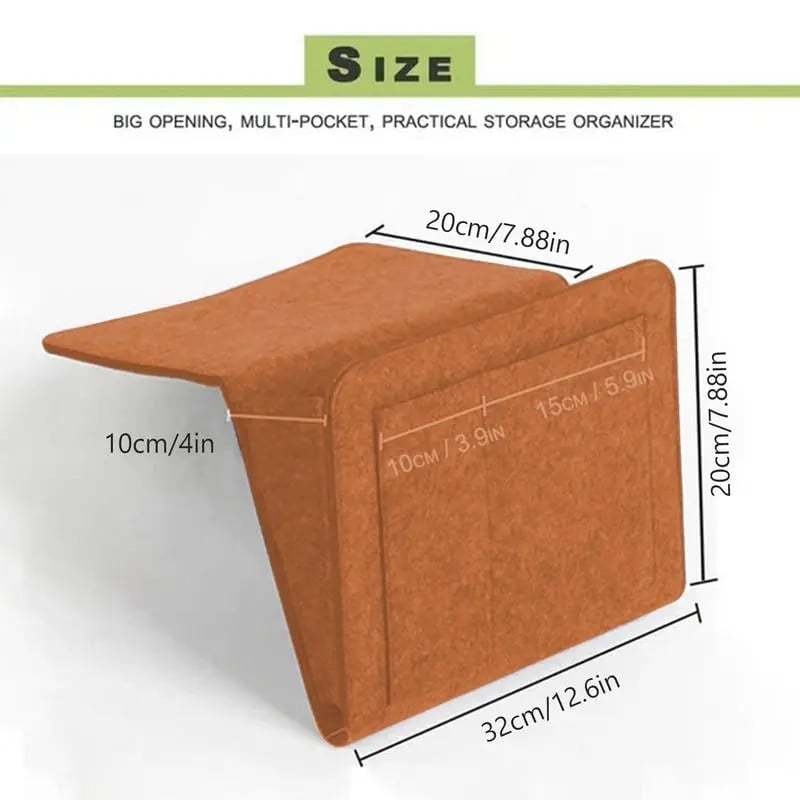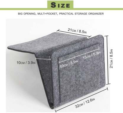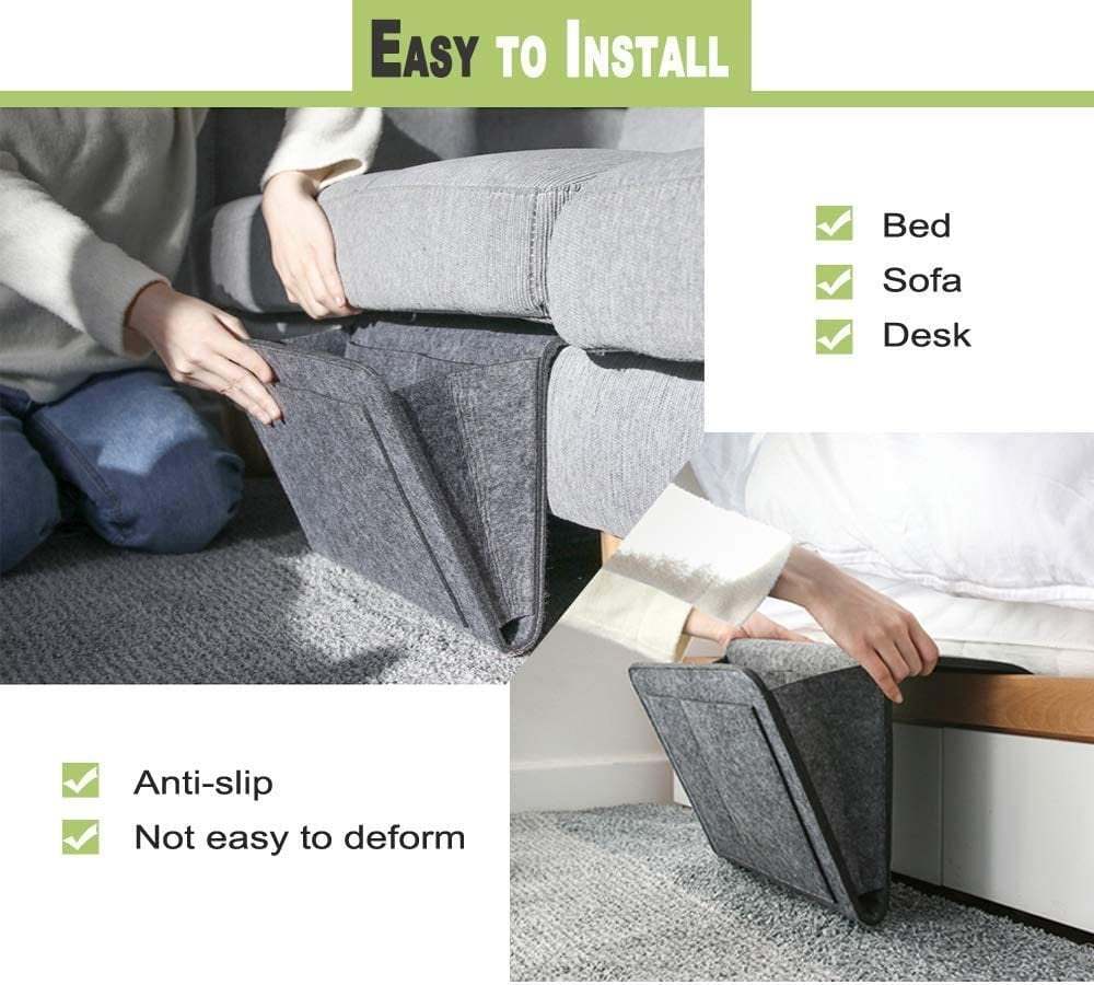 The high-quality chemical fiber felt storage bag is ideal for convenient bedside storage. Store your phone, laptops, e-readers, tablets, books, and remotes all at arm's length away for quick access. Secure your cords for convenient charging at night. Organizes items you frequently use to be readily accessible at your leisure. Never again will you have to get out of bed to reach a tissue, television remote, books, magazines, flashlights, medications, accessories, and more. When not in use, the caddy collapses for storage. This organizer is perfect for rooms where storage is limited.