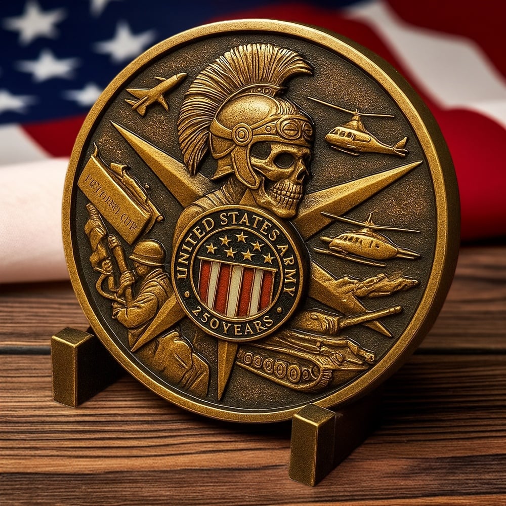 This officially inspired 250th Anniversary United States Army Coin celebrates a quarter-millennium of unparalleled service, sacrifice, and strength. From Bunker Hill to Baghdad, this commemorative piece captures the evolution of American military might, fused with rich symbolism and deeply emotional tribute.